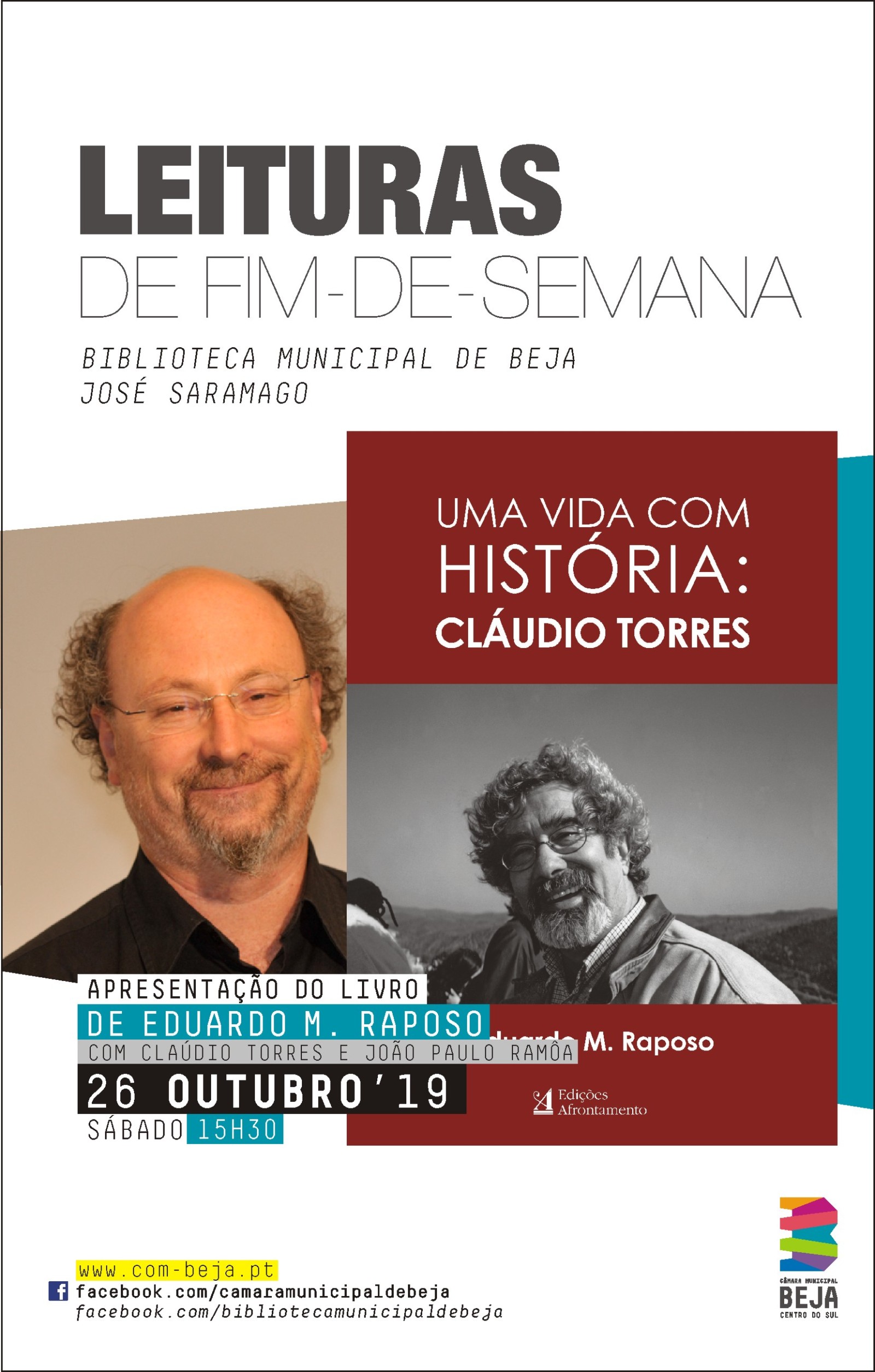 Apresentação do livro “Uma Vida com História: Cláudio Torres”, na Biblioteca Municipal de Beja, 26 de Outubro, pelas 15h30.