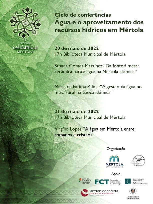 Durante a 11ª Edição do Festival Islâmico de Mértola, o CAM organizou três conferências no âmbito da água e do aproveitamento dos recursos hídricos em Mértola, entre o período romano, antiguidade tardia e período islâmico. As sessões decorreram na Biblioteca Municipal de Mértola, com uma participada assistência.