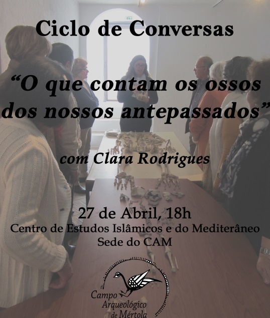 O Ciclo de Conversas: “O que contam os ossos dos nossos antepassados” será com Clara Rodrigues, no dia 27 de Abril, pelas 18h, na Sede do CAM, Centro de Estudos Islâmicos e do Mediterrâneo.