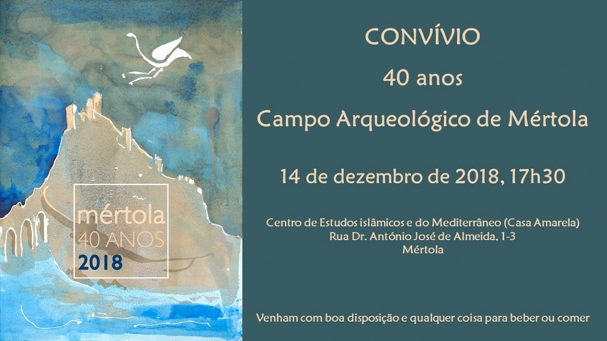 No âmbito das comemorações dos 40 anos do Campo Arqueológico de Mértola, terá lugar um convívio na sede do CAM, na sexta-feira, 14 de Dezembro a partir das 17h30 em diante, para partilha de memórias, imagens e "comes e bebes".