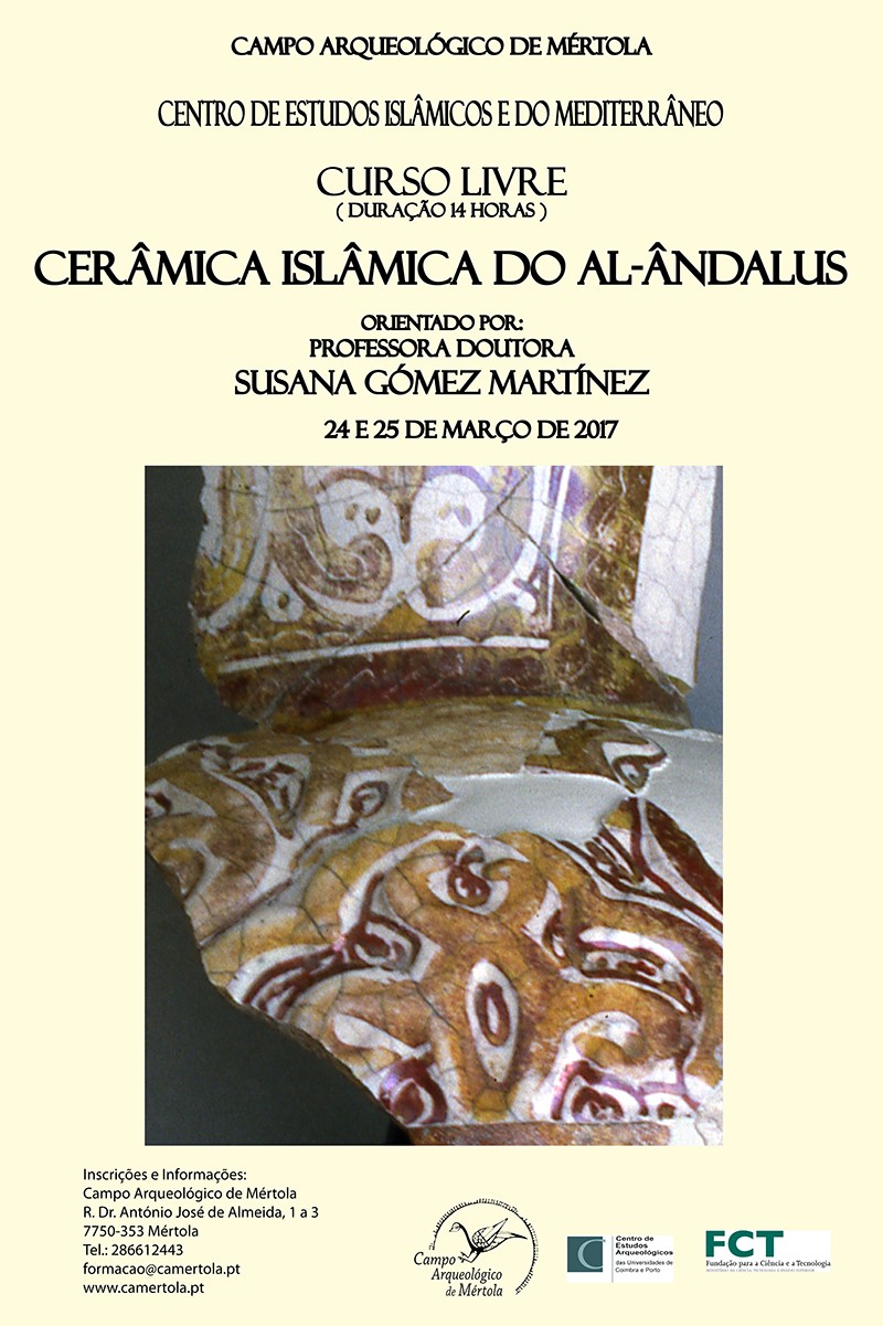 Inscrição: 50€ (inclui certificado de frequência e livro “ Cerâmica Islâmica de Mértola” de Susana Gómez)