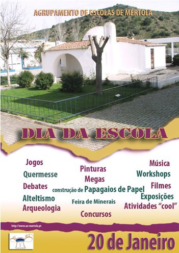 “Na próxima segunda feira, dia 20, celebramos mais um Dia da Escola, que coincide com o Dia de São Sebastião, o seu padroeiro. Será um dia de festa e convívio entre os diversos elementos da comunidade educativa. Não se desenvolverão atividades letivas, mas sim jogos, concursos, sessões de cinema e poesia, como pode consultar nos cartazes. Contaremos com a participação de TODOS os alunos do Agrupamento e com os nossos parceiros estratégicos (ADPM, Campo Arqueológico, Santa Casa da Misericórdia, Biblioteca Municipal, entre outras entidades) que, mais uma vez, colaboram com o Agrupamento no desenvolvimento de projetos de caráter lúdico. Esperamos a participação de todos e desejamos desde já um FELIZ DIA DA ESCOLA!!”