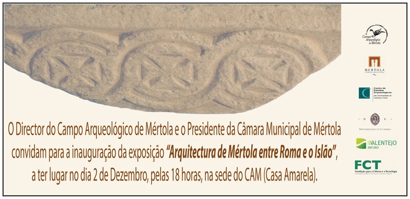 No dia 2 de Dezembro, pelas 18 horas, na sede do Campo Arqueológico de Mértola (Casa Amarela), terá lugar a inauguração da Exposição "Arquitectura de Mértola entre Roma e o Islão". A mesma irá estar patente, neste local, até Abril de 2011.