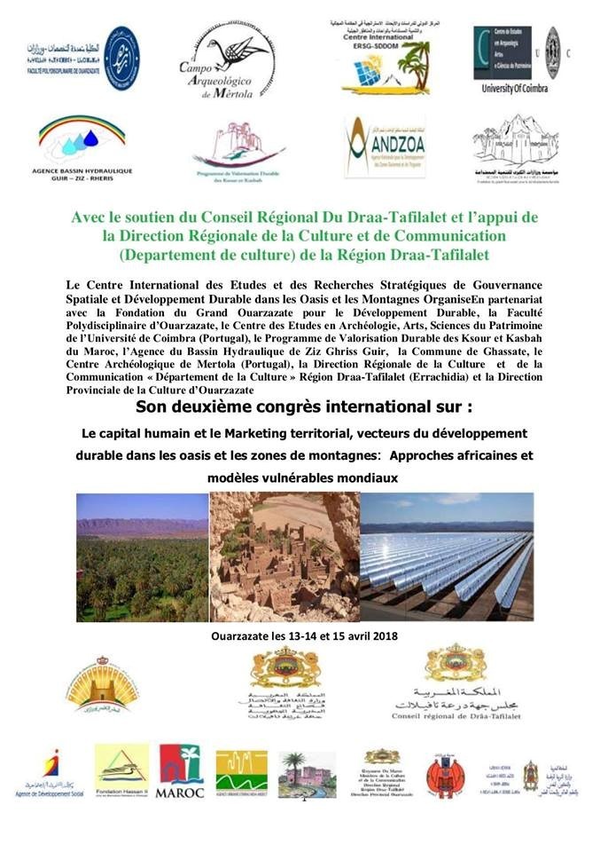 II Congresso Internacional sobre Capital Humano e Marketing Territorial - Vetores de Desenvolvimento Sustentável em Oásis e Áreas Montanhosas: Abordagens Africanas e Modelos Globais Vulneráveis | 13 a 15 de abril de 2018 – Palácio de Congressos | Ouarzazate | Marrocos