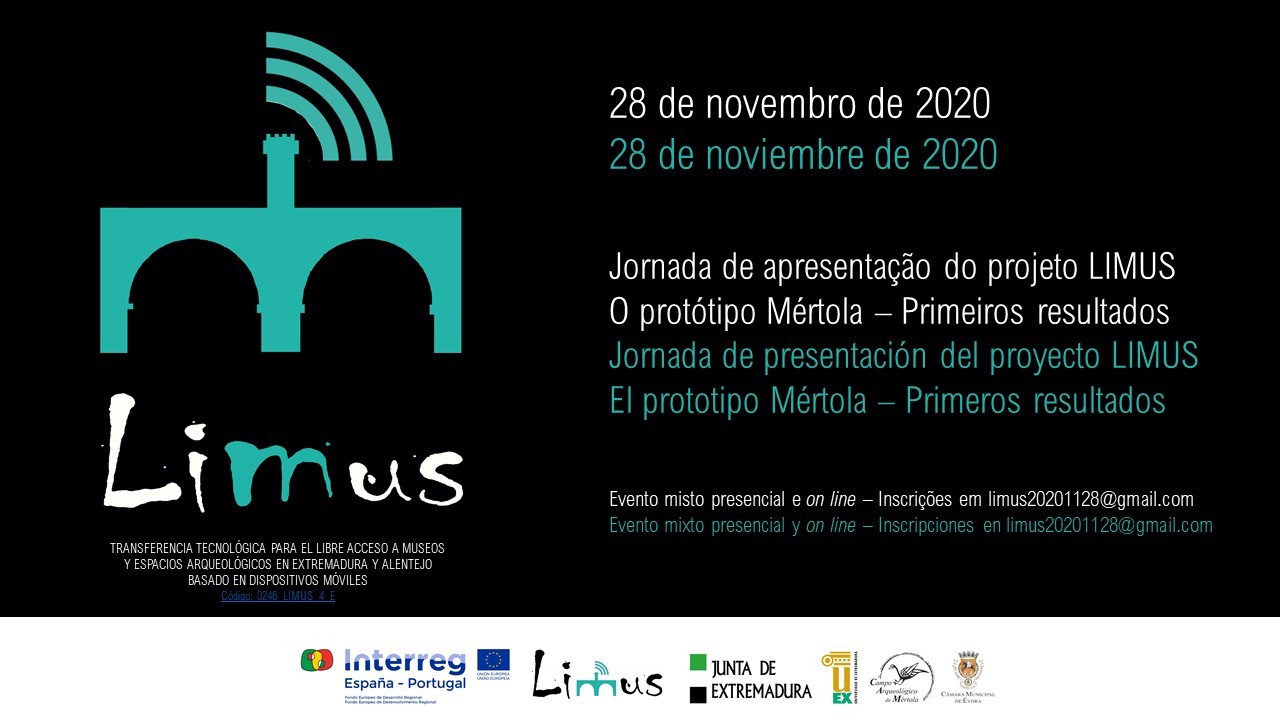 O objetivo geral desta jornada é apresentar ao público um avanço dos resultados do Projeto LIMUS - Transferência tecnológica para o livre acesso a museus e espaços arqueológicos em Extremadura e Alentejo baseado em dispositivos móveis, financiado pelo programa europeu transfronteiriço POPTEP (Interreg Espanha – Portugal 2014-2020), com recurso às verbas FEDER.