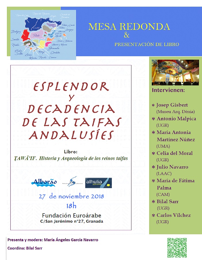 A 27 de Novembro, pelas 18h na sede de la Fundación Euroárabe, em Granada, realiza-se a Mesa Redonda “Esplendor y declive de las taifas andalusíes. Claves para su interpretación” e a apresentação do livro Tawā’if.