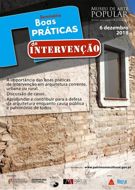 A Direção-Geral do Património Cultural, no âmbito do Ano Europeu do Património Cultural organiza, em parceria com o ICOMOS-Portugal, no dia 6 de dezembro, no Museu de Arte Popular, em Lisboa, um colóquio dedicado às boas práticas de intervenção em arquitetura corrente.