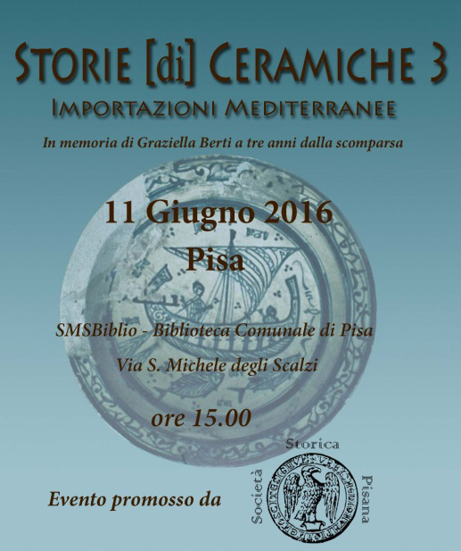 Storie [di] Ceramiche 3 - Homenagem a Graziella Berti 20, maio 2016 11 de Junho de 2016 em Pisa Storie [di] Ceramiche 3 – Importazioni Mediterranee Homenagem a Graziella Berti à qual o Campo Arqueológico de Mértola se associa. Ver convite (PDF) Ver programa (PDF) Termos relacionados: Notícias