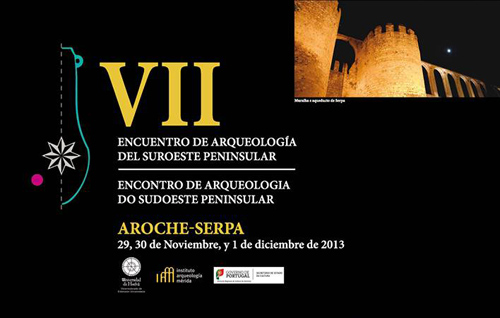 O VII Encontro de Arqueologia do Sudoeste Peninsular este ano, coincidindo com o 20º Aniversário do Primeiro Encontro, celebra-se entre as localidades de Aroche (Espanha) e Serpa (Portugal). E contará com duas edições, 2013 em Aroche com visita a Serpa e 2014 em Serpa com visita a Aroche.