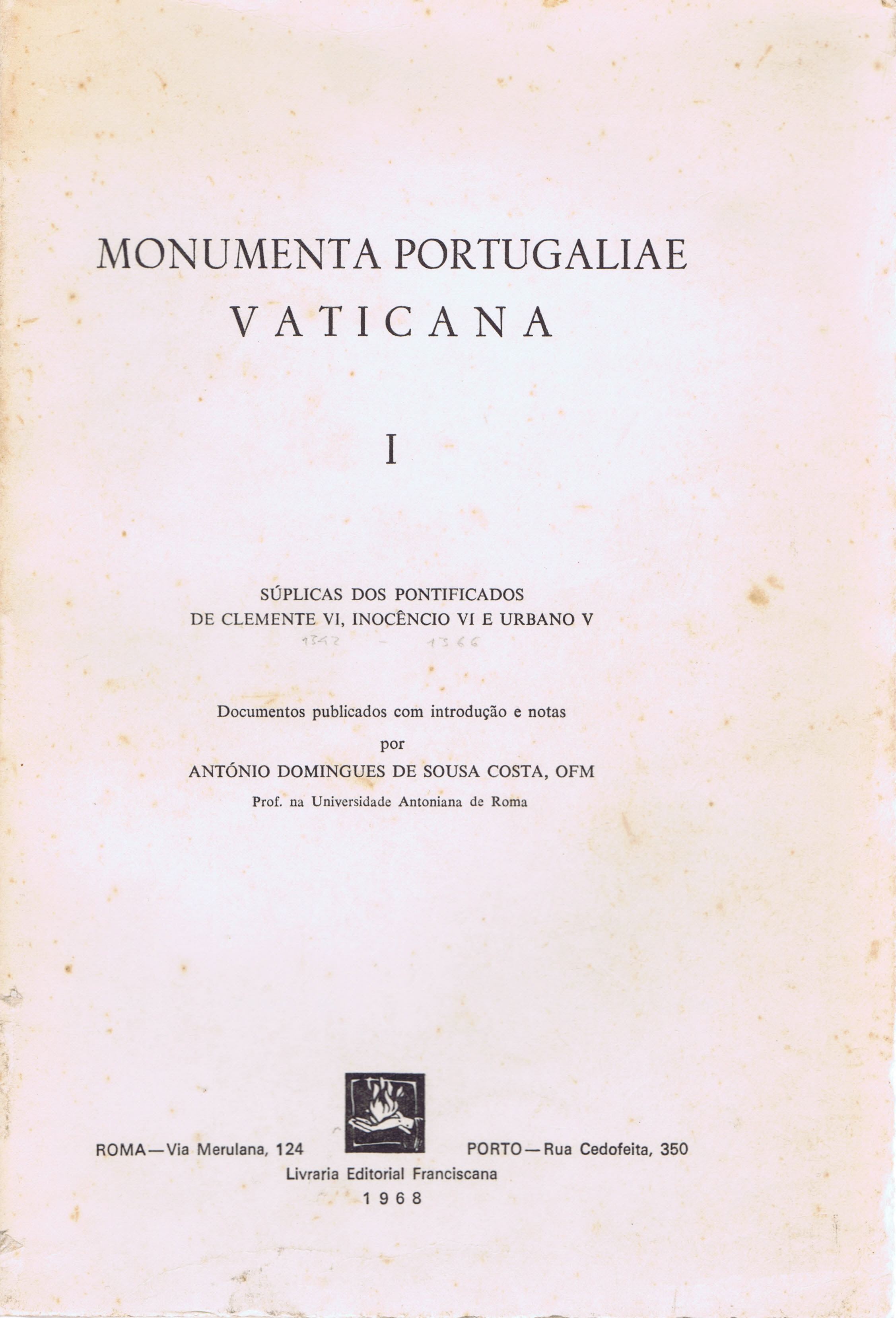 COSTA, António Domingues de Sousa (ed. lit.) - Monumenta Portugaliae Vaticana. Roma : Editorial Franciscana, 1968-1982. 5 tomos em 4 volumes.