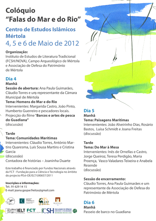 The Colloquium “Dialects from the Sea and River” takes place on 4, 5 and 6 May 2012 at the Centre for Islamic Studies and the Mediterranean/Mértola’s Archaeological Field.
