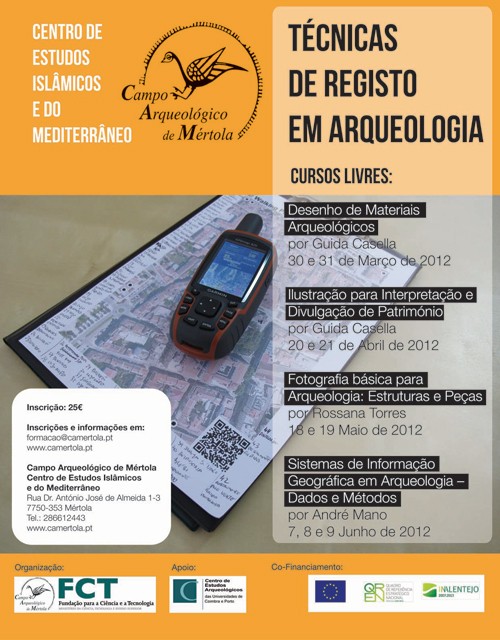 During the 1st half of 2012, Mértola’s Archaeology Site will hold 4 short courses on Registration Techniques in Archaeology. These courses are integrated in the educational plan of this institution, aiming to build and diversify knowledge intrinsic to the fields of Archaeology and Heritage studies. These courses are mainly directed to Archaeology students and professionals in the areas of Archaeology and Heritage studies who intend to further knowledge in neglected areas of their vocational or academic training. According to subject, the courses may have a duration of 1 to 3 days, with a 7 hour daily schedule with theoretical and practical sessions, according to the plan of each course.