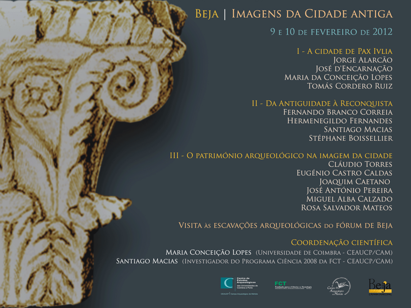 "In the 9th and 10th of February the Symposium “Beja - Images of the Ancient City” will take place in Beja. Among others, Jorge Alarcão, José d'Encarnação, Cláudio Torres and Joaquim Caetano will participate in the event.