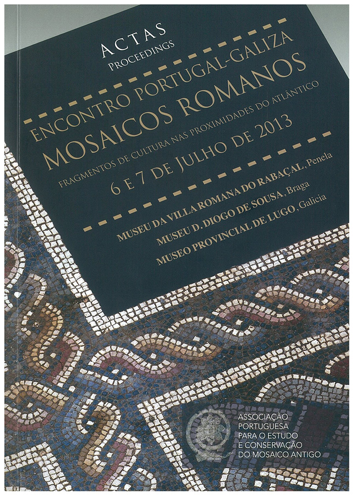 ENCONTRO PORTUGAL-GALIZA. MOSAICOS ROMANOS - FRAGMENTOS DE CULTURA NAS PROXIMIDADES DO ATLÂNTICO, Penela, Braga e Lugo, 2013 - Encontro Portugal-Galiza. Mosaicos romanos - Fragmentos de cultura nas proximidades do Atlântico : atas. [S.l.]: Associação Portuguesa para o Estudo de Conservação do Mosaico Antigo - APECMA/AIEMA, 2015. ISBN 0978-989-20-5931-0.